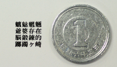 上が当店のゴム印、下が簡素に作成できる1工程で作成したゴム印の印影です。下のゴム印はゴムが薄く彫りも浅いため強く押すと文字の無い部分が汚れてしまいます。